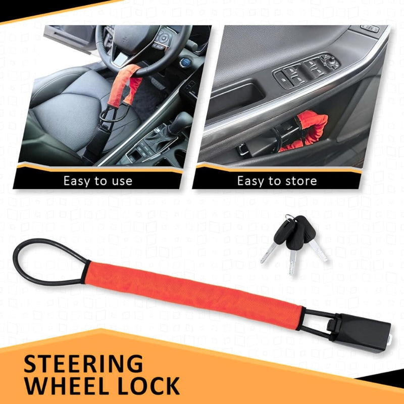 The steering wheel lock secures your steering wheel and difficult to turn, making it difficult for thieves to turn the steering wheel and also unable to use the seat belt. Highly visible colours and sturdy car anti-theft device are a great deterrent, which annoys a thief trying to steal a car, so he will stay away from your car.